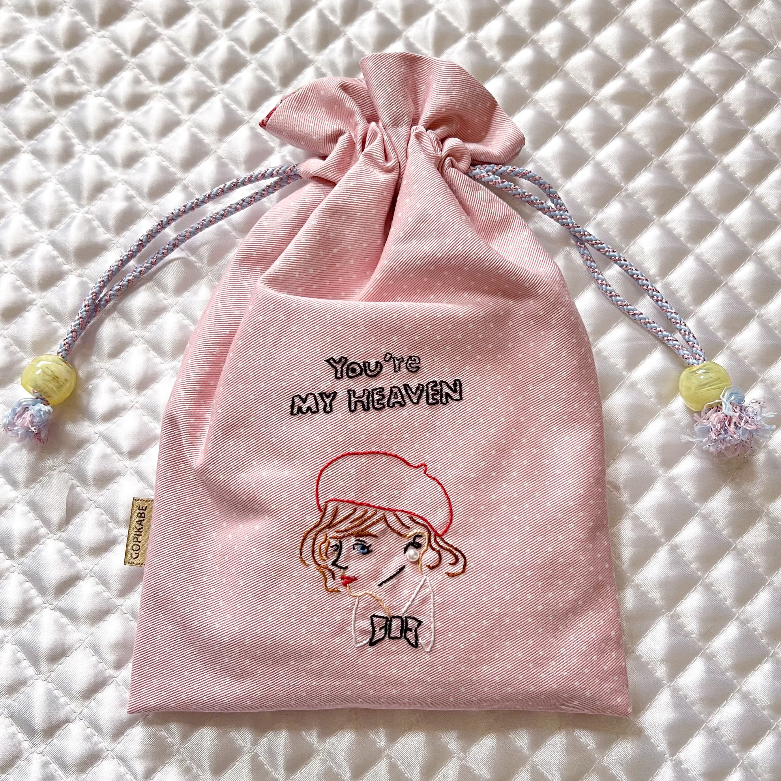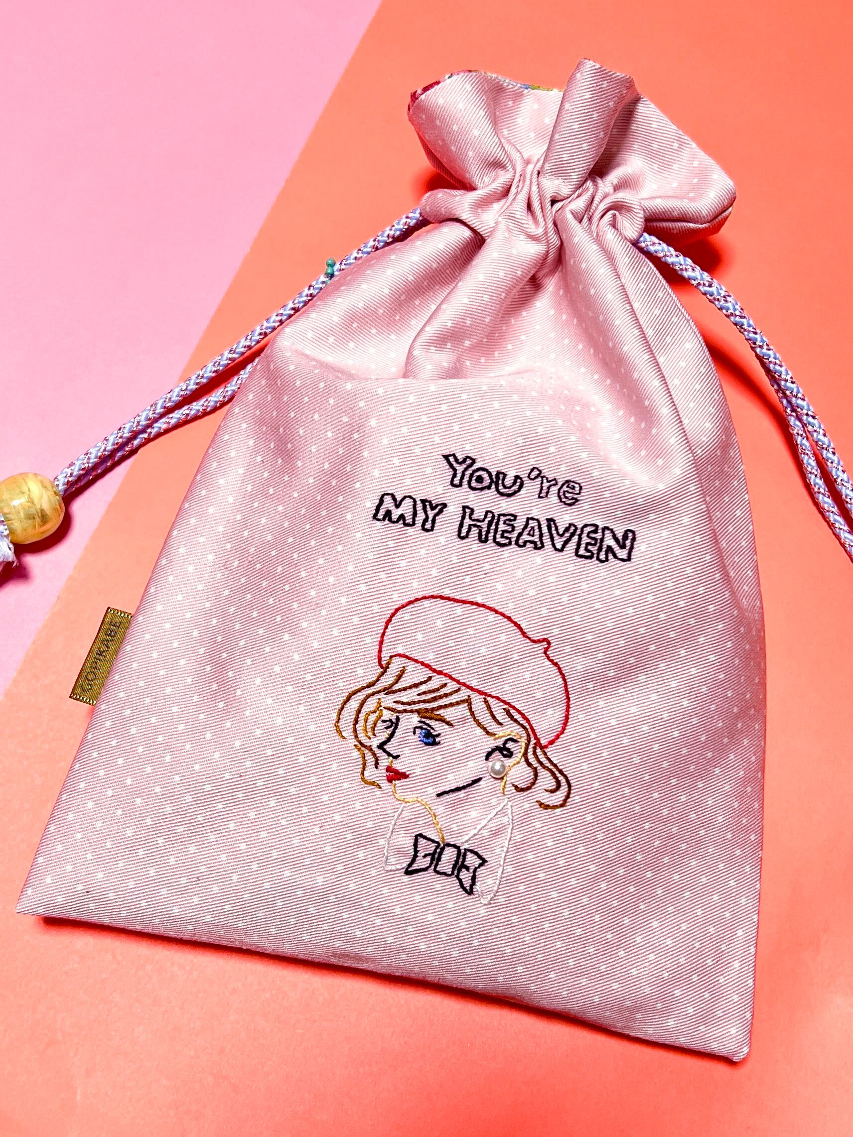 【刺しゅう】You're MY HEAVEN /手刺しゅう巾着ポーチ