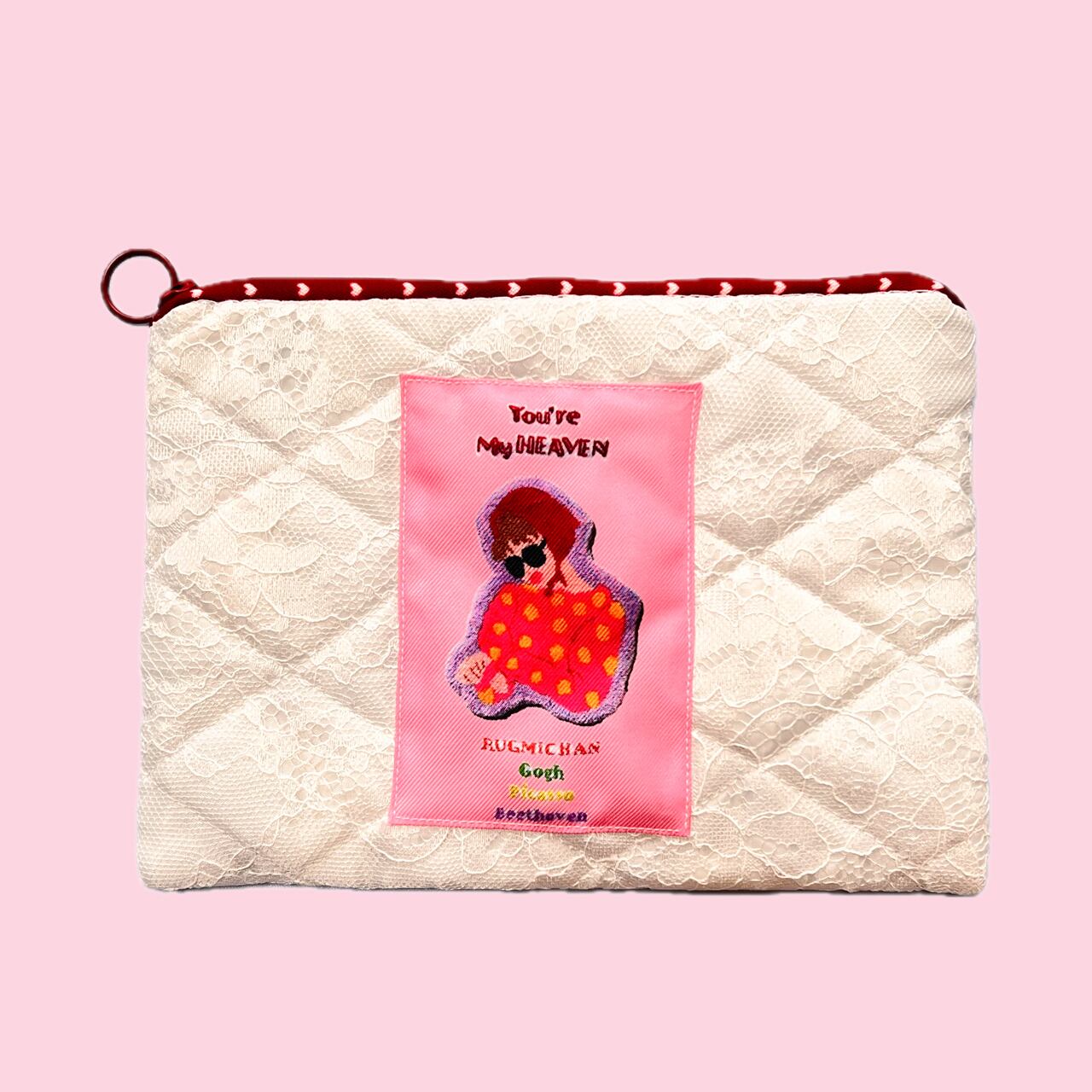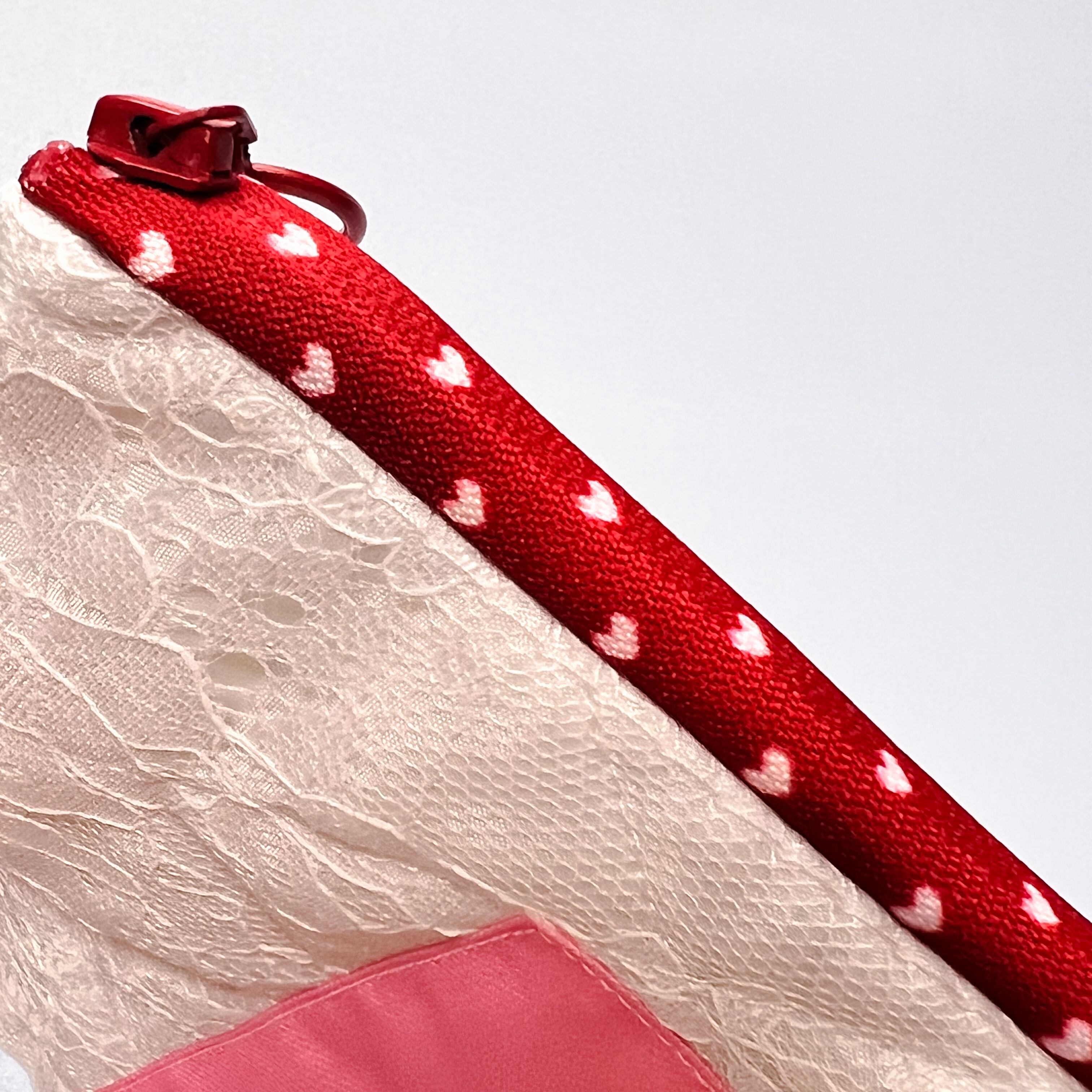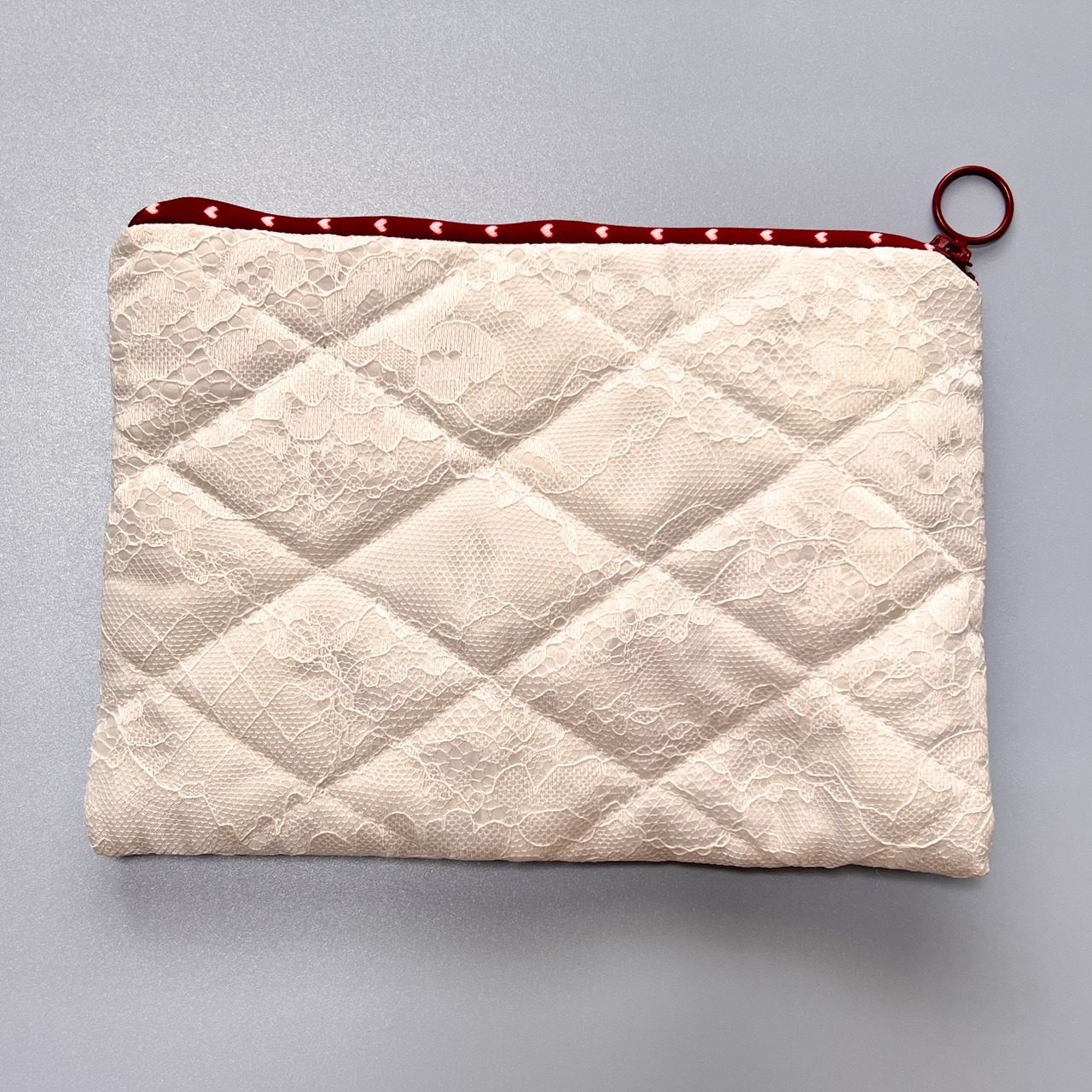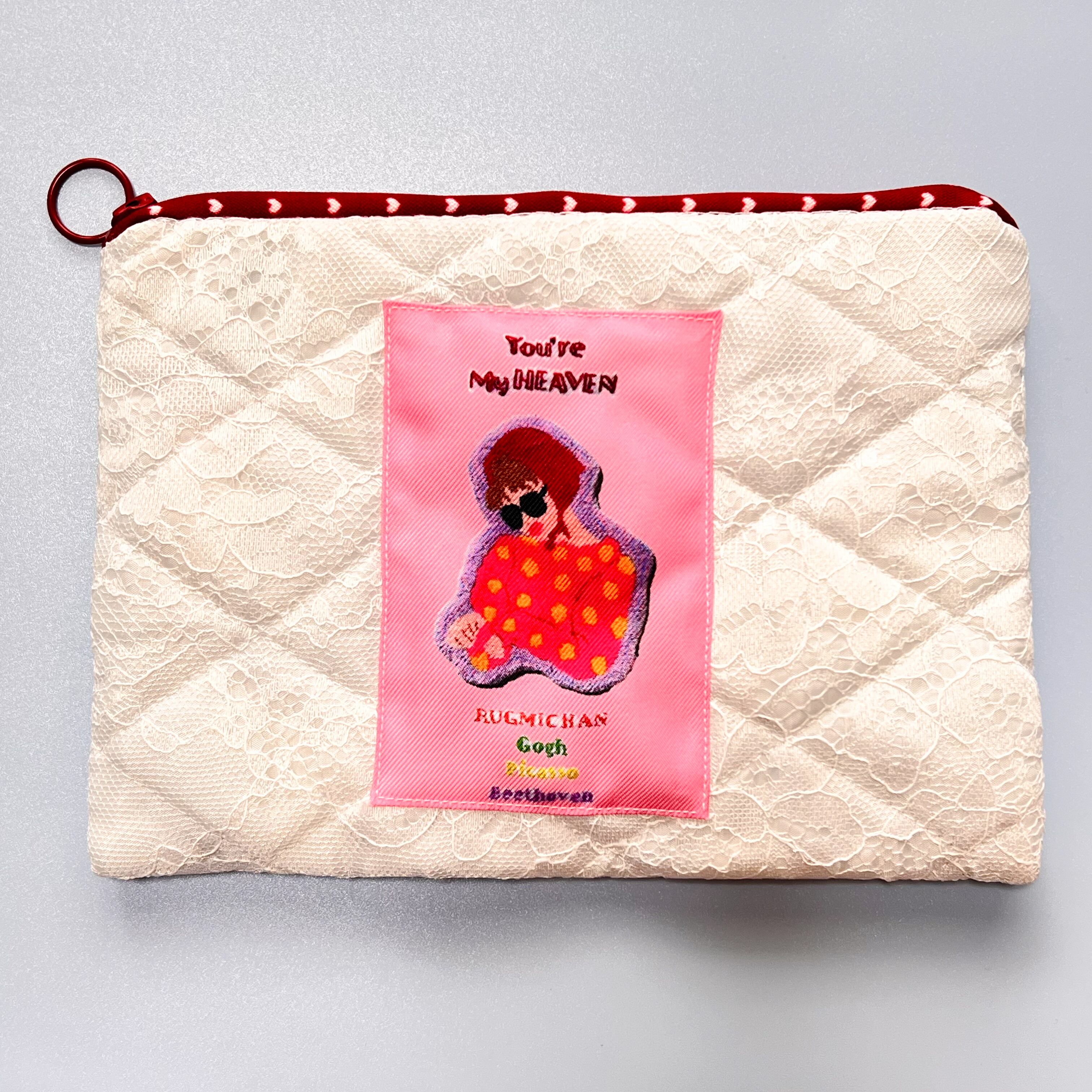 レース✖️キルティングの表生地には、負けない赤ずきんジュンコの刺しゅうがプリントされたワッペンが付いています。