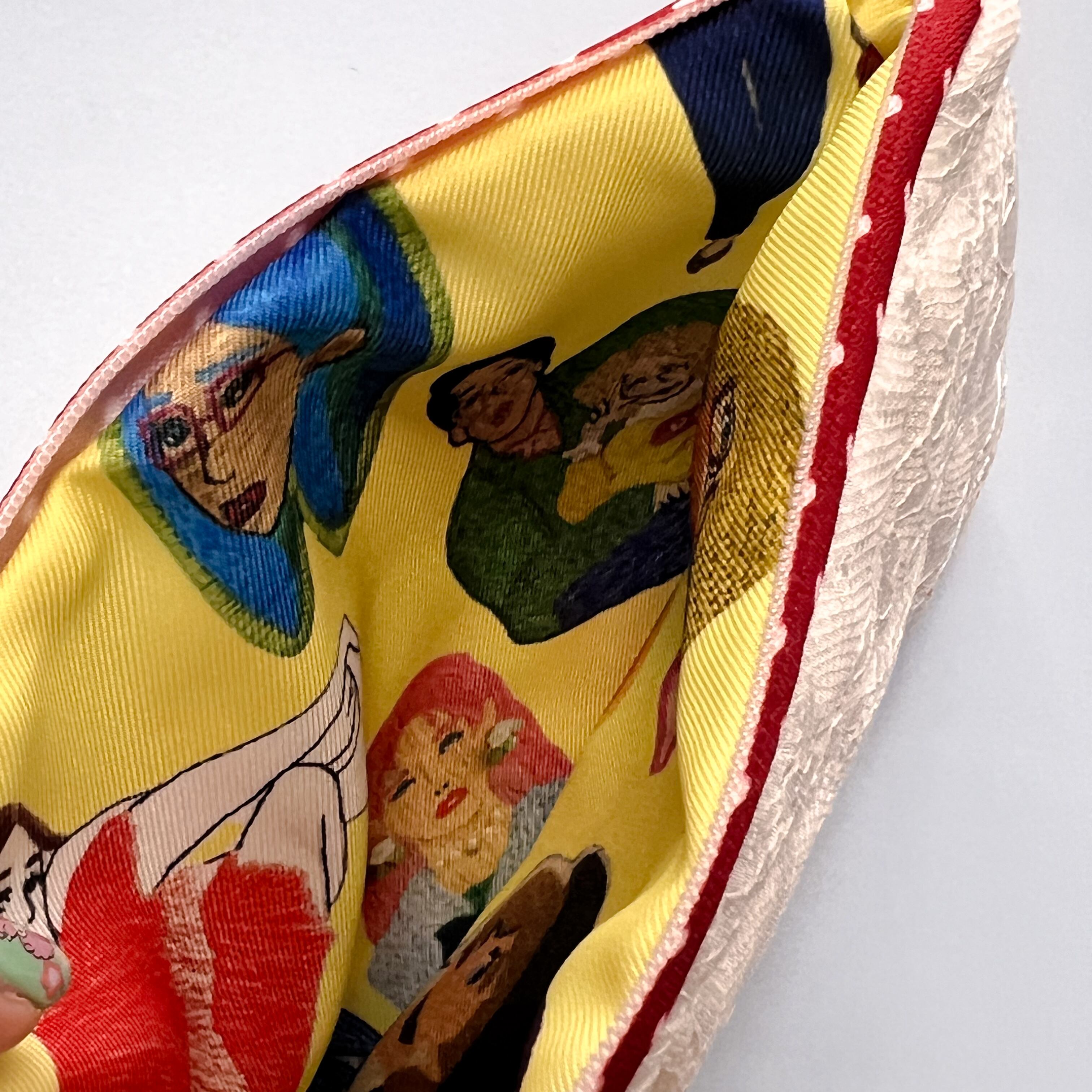裏地には、歴代の作品をプリントアウトしたオリジナルファブリックを使用。